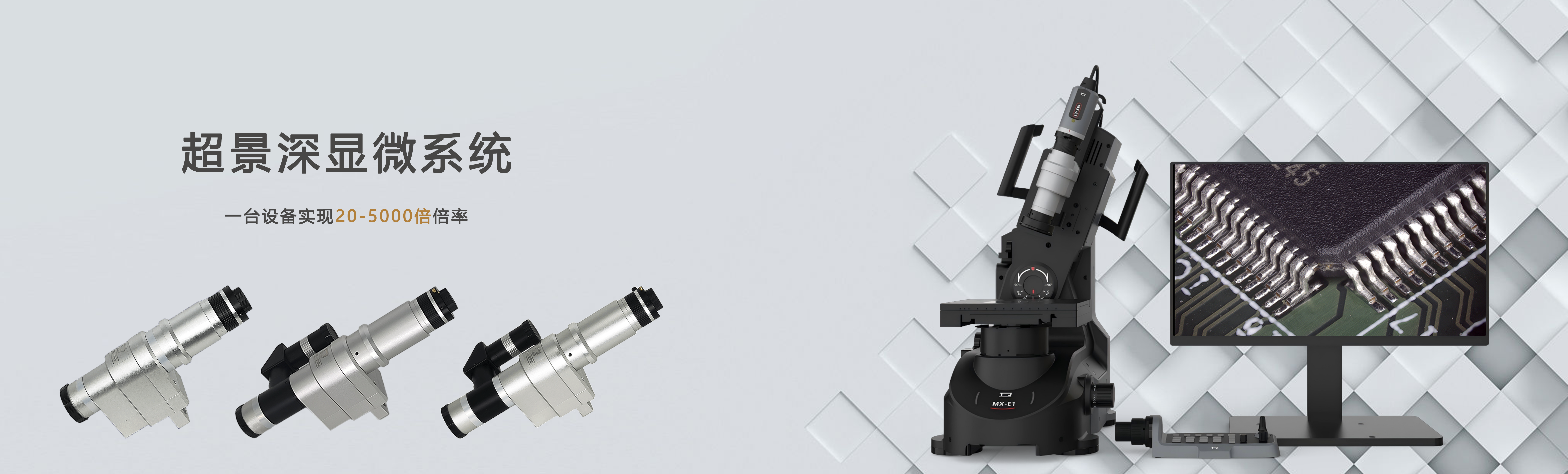 全新超景深三维显微系统 MX-E1系列 集合了超清晰的4k图像处理引擎,同时也具有景深叠加的功能,可电动变倍调焦。图像拼接功能即使视野范围小依旧可以扩大观察范围,同样可多角度倾斜观察。